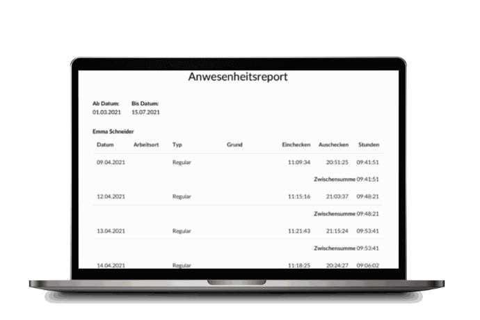 Every attendance entry is logged individually based on the posting principle. Whether you're a manager viewing all employees or a staff member reviewing your own hours—our flexible permission system supports both.