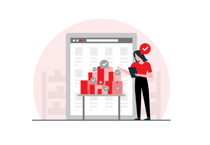 The system automatically reads each product by SKU and the desired quantity.
