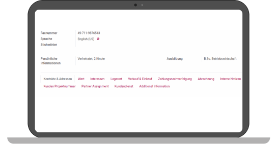 Text fields are the most variable fields and can be filled with both numbers and letters. Already shown several times the additional field of the fax number is a text field.