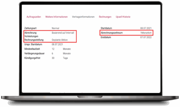 Recurring products display contract interval details